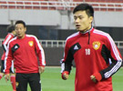 组图-[国足抵达赛场傅博神情专注][球迷燃放焰火助威]