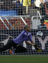 第77分钟,斯洛文尼亚队后卫回传,汉达诺维奇传球给后卫时出现失误,球直接传到阿尔及利亚队齐亚尼脚下,后者得球形成单刀!好在,汉达诺维奇反应及时,他及时出击再度扑得皮球,化险为夷。 >>世界杯门将脑残事件大集合
